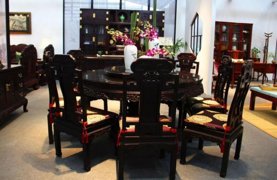 ▲祥利紅木現(xiàn)場(chǎng)展品