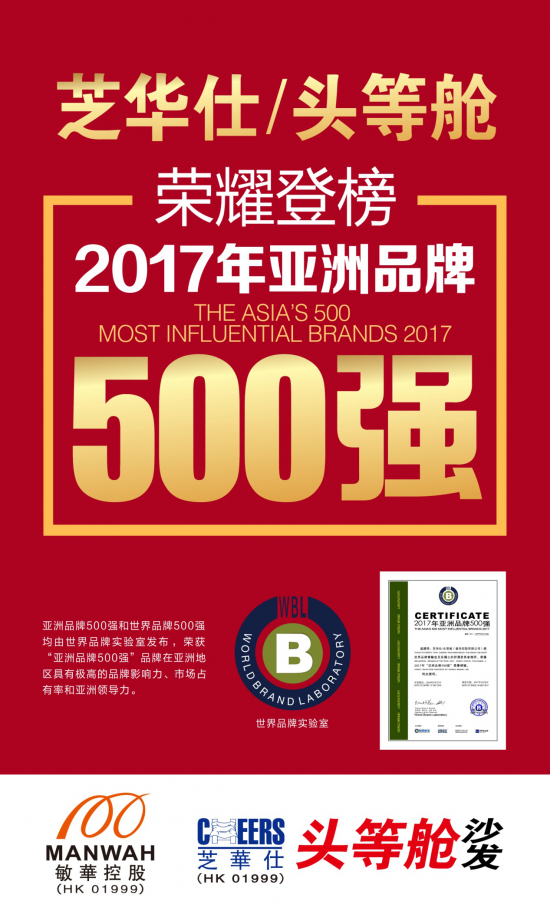 2017年“亞洲品牌500強(qiáng)”排行榜由世界品牌實(shí)驗(yàn)室和世界經(jīng)理人集團(tuán)共同發(fā)布,共有20多個(gè)國家和地區(qū)的500個(gè)品牌入選,芝華仕、頭等艙作為家具領(lǐng)域的首位入選品牌,對于中國家具行業(yè)意義非凡,展示了中國品牌的全新國際力量。