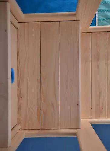 產(chǎn)品將所有五金配件都隱藏在各個(gè)連接部件的內(nèi)部,并將見(jiàn)光面的螺絲孔全部用與木材顏色相近的膠塞蓋住,有效防止小孩在與家具接觸時(shí)所產(chǎn)生的傷害,減少意外發(fā)生,安全放心。該產(chǎn)品梯子的設(shè)計(jì)、板件端部的倒圓角都經(jīng)過(guò)了處理,在使用的尺度方面和操作方便性方面,也有細(xì)致的考慮。