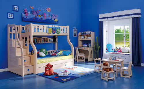 設(shè)計(jì)師圍繞“海底世界”為主題,房間內(nèi)以藍(lán)色亮麗的色彩為主色調(diào),設(shè)計(jì)這樣一組家具組合,家具設(shè)計(jì)簡(jiǎn)明,清晰自然,家具也從兒童安全角度出發(fā),各方面細(xì)節(jié)做得比較好,也充分考慮了人機(jī)工學(xué),家具尺寸與兒童體重身高互相配合。