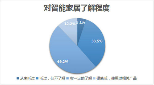 雖然說智能家居市場的發(fā)展時間并不短,且國內(nèi)各類智能家居平臺與產(chǎn)品頻頻面市,為智能家居的普及起到了一定的作用。但是,因為智能家居市場良莠不齊,行業(yè)遲遲無法明確地告訴消費者智能家居能為其提供什么樣切實的服務(wù)。這使得消費者對于智能家居的認知一直處在較為模糊的階段。調(diào)查數(shù)據(jù)顯示,33.5%的受訪者表示聽說過智能家居,但是并不了解;有一定了解的占比49.2%;僅有12.2%的受訪者表示使用過相關(guān)產(chǎn)品。