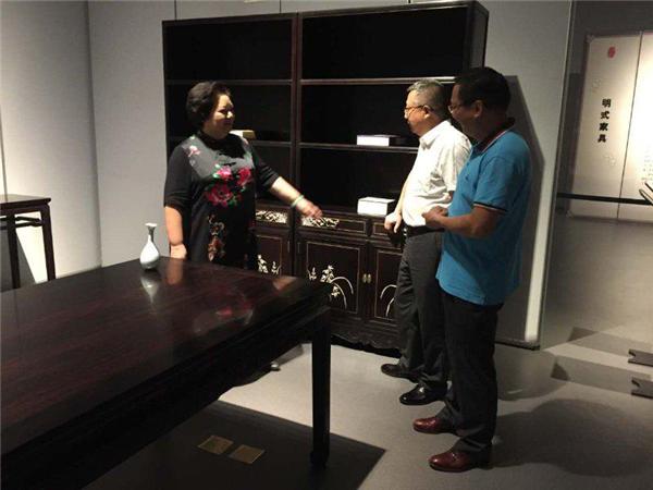 與中國(guó)紫檀博物館館長(zhǎng)陳麗華女士交流明清家具文化及制作技藝。