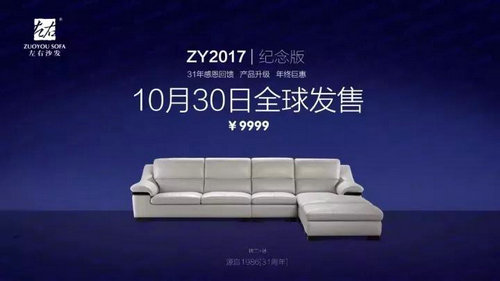 “幸福”是左右沙發(fā)品牌文化中的核心部分。左右之所有能夠在31年間發(fā)展成為國內(nèi)具有一定規(guī)模和地位的品牌,離不開經(jīng)銷商和消費者的支持。在此新品發(fā)布之際,特地推出31周年紀(jì)念款單品ZY2017。