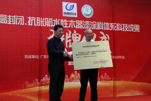 10月21日,海順科技“高封閉、抗脹筋水性木器漆涂料體系”科技成果授牌儀式隆重舉行。