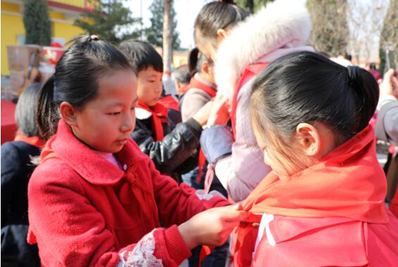 樂陶山小學(xué)的孩子們?yōu)閻坌男√焓瓜瞪霞t領(lǐng)巾