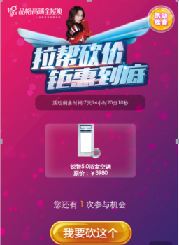 接下來就是敲黑板,劃重點(diǎn)的時(shí)間了!品格拉幫砍價(jià)的活動(dòng)為期8天,11月10日9:00~11月17日24:00——呼朋喚友的時(shí)候到了,人品爆棚的小仙女們都趕緊叫上好閨蜜鐵哥們、發(fā)動(dòng)七大姑八大姨為你拉幫砍價(jià),暖暖噠的浴室空調(diào)等你把它帶回家!