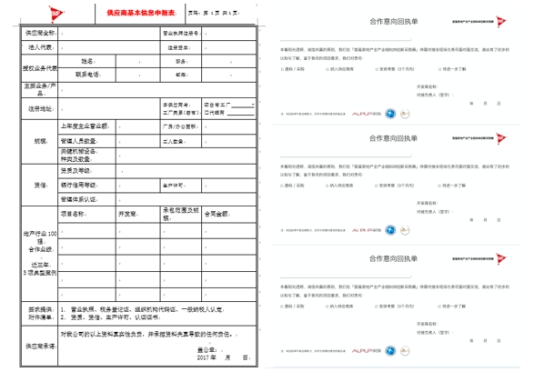 會前,所有參會企業(yè)需填寫資質(zhì)預(yù)審文件,內(nèi)容涵蓋企業(yè)基礎(chǔ)信息、驗(yàn)廠報告、產(chǎn)品型號價格以及以往合作案例,這些資料非常重要哦!因?yàn)檫@些資料在會前給所有到參會開發(fā)商,他們會提前對企業(yè)進(jìn)行評估并進(jìn)行項(xiàng)目匹配,以便現(xiàn)場可以更深入的溝通并簽訂合作意向書。在這里小編偷偷的把資質(zhì)預(yù)審文件和合作意向書給大家LOOK LOOK O(∩_∩)O哈!