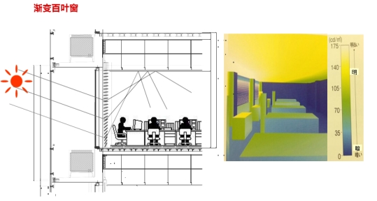此外,介紹的另一款新品——漸變百葉窗,可接入電腦系統(tǒng),根據(jù)太陽光線的射入角度自動控制系統(tǒng)從而改變葉片的翻轉角度,調節(jié)自然光線的室內射入量,最大效率地利用自然光線。