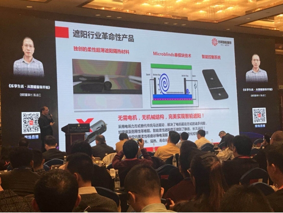 會上,創(chuàng)明推出柔性遮陽產品——調光玻璃,選用獨創(chuàng)的柔性超薄遮陽隔熱材料 ,應用Microblinds單模塊技術,接入智能控制系統(tǒng)后,即可無需電機,無機械結構,高效實現(xiàn)隔熱節(jié)能,經久耐用的智能遮陽調光體驗,是遮陽行業(yè)革命性產品。