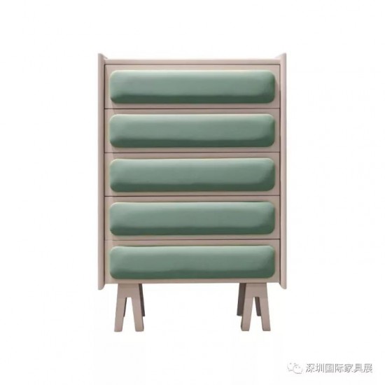這個系列的靈感來源于20世紀(jì)60年代摩登時代的設(shè)計風(fēng)潮。造型奇特、用色大膽,開辟出一條充滿創(chuàng)意的道路。該系列擁有相同的柜腳、軟包和圓形玻璃元素,把童心融入家具中。彈壓開關(guān)設(shè)計增加日常使用的便捷性。并排的多個抽屜組合上包裹小一圈的軟包呈現(xiàn)輕盈的形態(tài)美。