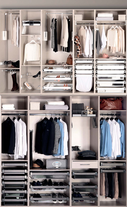 在家里擁有一個既好看又帶強大儲物功能的衣帽間,是每一位女主人的終極夢想,但現(xiàn)實生活中總會因種種因素,而難以實現(xiàn)?,F(xiàn)在,海福樂可以提供一站式五金解決方案,升級您的衣柜,將衣柜變身為迷你衣帽間。海福樂超長的產(chǎn)品線中,包含掛衣桿、褲架、領(lǐng)帶夾、折疊式熨衣板、隱藏式穿衣鏡、拉籃、LED照明、抽屜滑軌、衣柜推拉門五金等衣柜五金,致力于為客戶打造完美的衣柜收納空間。
