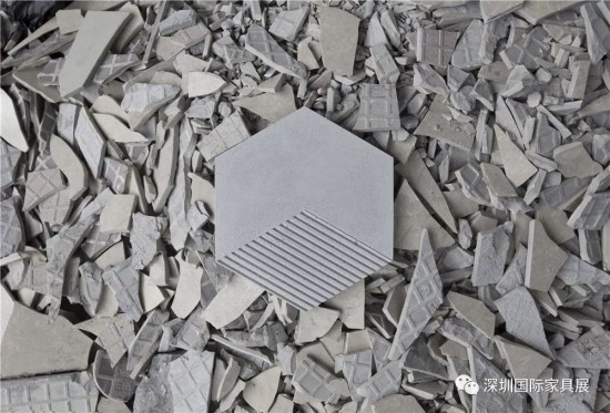 消費(fèi)時代的春雨催生出一茬茬新需求,也催生了人類欲望的瘋長。生產(chǎn)不再只是滿足生存的基本幸福,人類壟斷、自然破產(chǎn)、大地虧空,欲望的摻雜讓生產(chǎn)虛假地膨脹,大量陶瓷邊角料的堆棄成為最佳注腳。本土創(chuàng)造嘗試將廢棄陶瓷邊角料與混凝土相結(jié)合,是想驗證一種思路:利用水泥的膠凝作用,是不是能使其利用率不再受限?將陶瓷邊角料與混凝土相結(jié)合,回歸到建材產(chǎn)品中去。將陶瓷的沉痛哀鳴一并攪碎倒進(jìn)混凝。土骨料,在流水線的模子里灌造極致。一方方,灰白,堅韌,平滑,莊重,是生命死來復(fù)生的肅穆,是欲望燃盡的蒼白沉默。