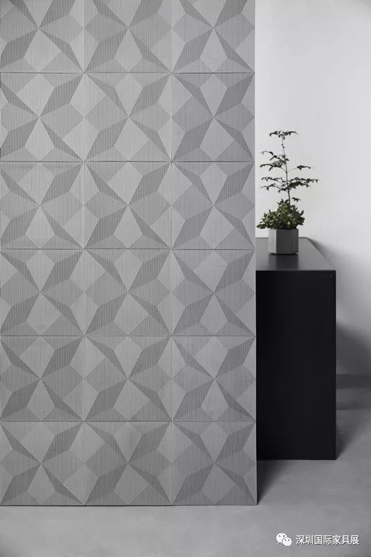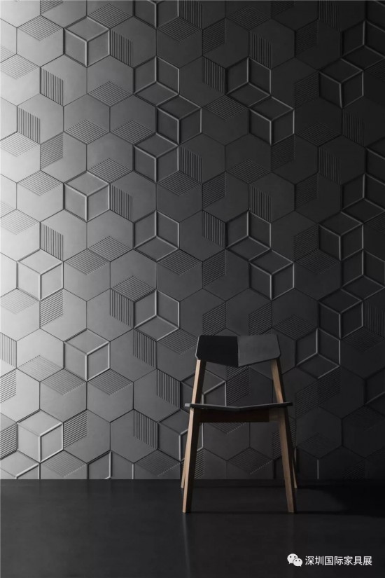 市面上的常規(guī)墻磚一般是利用顏色或直接設(shè)計起伏的立體表面來營造三維效果。“影”從不同的角度出發(fā),利用水泥高可塑性的材料特質(zhì),將立體結(jié)構(gòu)融于墻磚平面中。利用光在墻磚的二維平面上折射形成的陰影深淺來營造立體感,為裝飾性建材產(chǎn)品提供更豐富的發(fā)展方向。