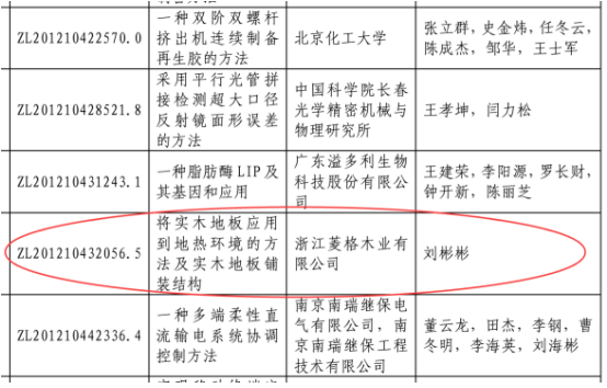 2017年12月,天格實(shí)木地?zé)岬匕鍛{借“將實(shí)木地板應(yīng)用到地?zé)岘h(huán)境的方法及實(shí)木地板鋪裝結(jié)構(gòu)”專利,榮獲第十九屆“中國專利獎(jiǎng)”。中國專利獎(jiǎng)是我國專利領(lǐng)域的最高獎(jiǎng)項(xiàng)和唯一專門對(duì)授予專利權(quán)的發(fā)明創(chuàng)造給予獎(jiǎng)勵(lì)的政府部門獎(jiǎng),得到聯(lián)合國世界知識(shí)產(chǎn)權(quán)組織的認(rèn)可,在國際上有著重要的影響。