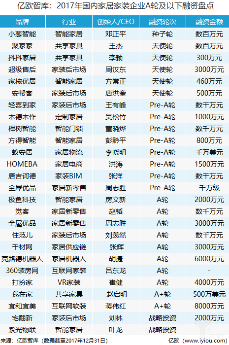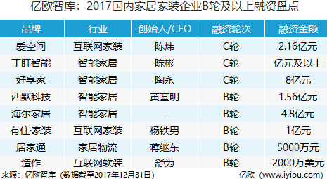 億歐智庫:2010-2017年國內(nèi)家居家裝企業(yè)融資匯總