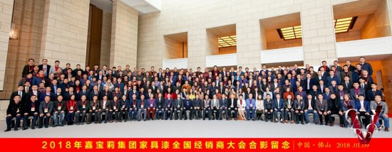 2018年1月9日,以“砥礪前行”為主題的嘉寶莉集團(tuán)家具漆全國經(jīng)銷商大會(huì)在佛山羅浮宮索菲特酒店盛大召開。嘉寶莉集團(tuán)創(chuàng)始人仇啟明、董事長(zhǎng)仇東航、副董事長(zhǎng)曹樹潮、集團(tuán)總經(jīng)理盧小波、集團(tuán)副總經(jīng)理兼工程漆事業(yè)部總經(jīng)理王樹坤、集團(tuán)副總經(jīng)理兼家具漆事業(yè)部總經(jīng)理周強(qiáng)等領(lǐng)導(dǎo)以及來自全國近300位核心經(jīng)銷商共同見證了嘉寶莉家具漆3.0時(shí)代再創(chuàng)新高度。
