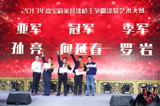 《2018年涂裝工藝庫發(fā)布會(huì)》伴隨著時(shí)尚超模的樣板秀,點(diǎn)亮了美輪美奐的嘉宴。隨后,代表著至高榮耀的終身成就獎(jiǎng)及新銳榜樣的未來力量獎(jiǎng)?lì)C獎(jiǎng)盛典掀起整場(chǎng)晚宴的高潮。晚宴上亦揭曉了2017年嘉寶莉家具漆槍王爭(zhēng)霸涂裝藝術(shù)大賽年度總決賽的各項(xiàng)大獎(jiǎng)。