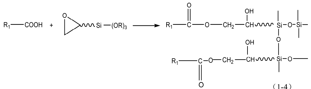 帶特殊官能團(tuán)的硅氧烷與乳液的活性基團(tuán)發(fā)生水解縮聚而交聯(lián),如帶環(huán)氧基的硅氧