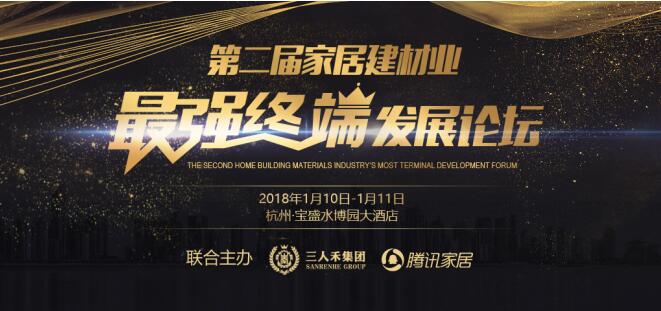 2018年1月10-11日,由三人禾集團、騰訊家居聯(lián)合發(fā)起,由三人禾高端營銷、三人禾教育、三人禾實業(yè)共同承辦的第二屆家居建材業(yè)最強終端發(fā)展論壇在杭州舉行。論壇以“承載行業(yè)使命共建生態(tài)系統(tǒng)”為核心,以”開放包容、互學(xué)互鑒、互利共贏“的態(tài)度探討共建行業(yè)生態(tài)系統(tǒng)。