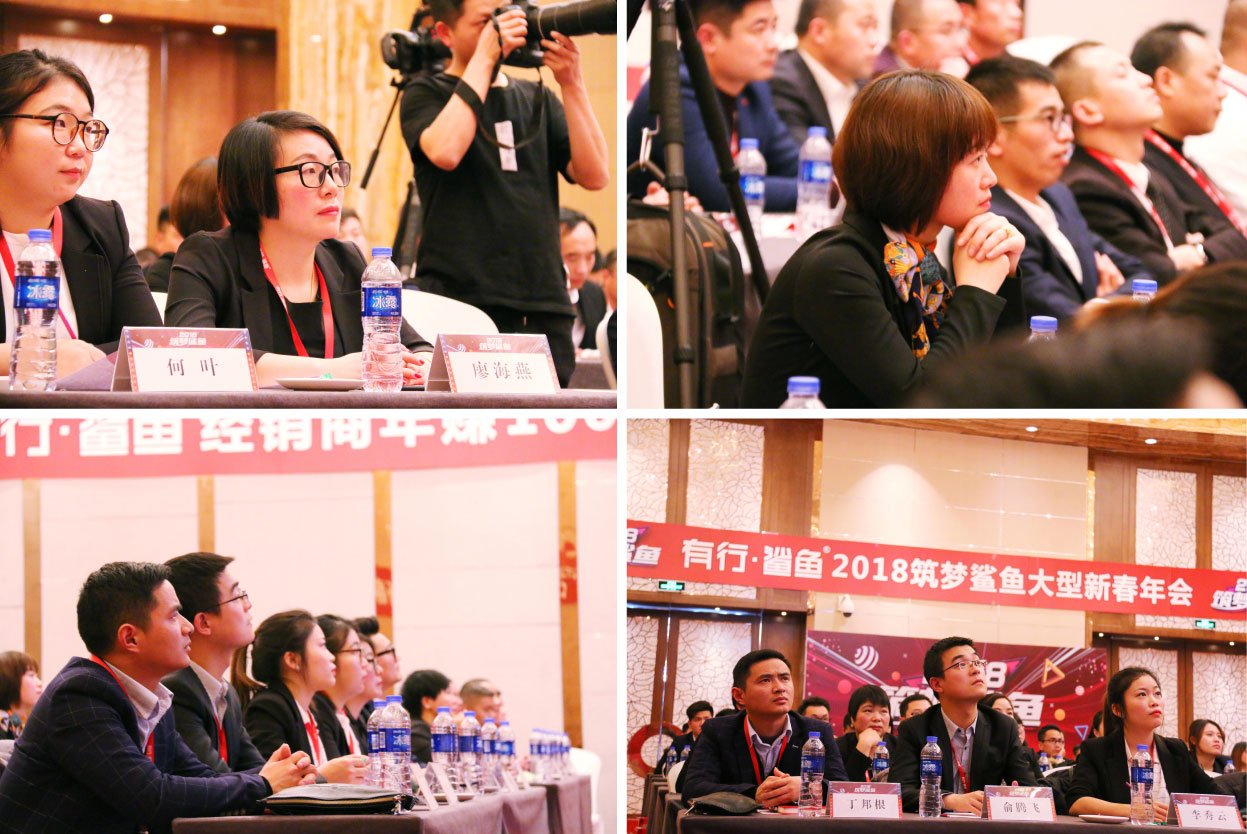 有行鯊魚極其關(guān)注每一位經(jīng)銷商、每一位員工的業(yè)績(jī)?cè)鲩L(zhǎng)、收入增長(zhǎng)。對(duì)此,有行鯊魚董事兼營(yíng)銷總經(jīng)理龔勇軍震撼發(fā)布“回顧2017、展望2018”,以幾近全篇的數(shù)據(jù)曲線形式回顧展示有行鯊魚公司、經(jīng)銷商、員工的“業(yè)績(jī)、收入翻倍增長(zhǎng)曲線,一條條清晰、犀利的波動(dòng),像一個(gè)個(gè)跳動(dòng)的音符,吹響了筑夢(mèng)2018響亮的號(hào)角!有行鯊魚夢(mèng)想宏圖已經(jīng)展開,但這絕非畫餅充饑、紙上談兵,關(guān)于目標(biāo)的落地執(zhí)行,龔總表示,有行鯊魚將全力打造更強(qiáng)大的年賺百萬精英經(jīng)銷商、銷售兵團(tuán),將堅(jiān)決做好極致化“服務(wù)”及“支持”,堅(jiān)決落地執(zhí)行“經(jīng)”“銷”同盟戰(zhàn)略、經(jīng)銷商更建計(jì)劃、經(jīng)銷商層層獎(jiǎng)勵(lì)政策、有行鯊魚中國(guó)行四大戰(zhàn)略規(guī)劃,助跑有行鯊魚精英經(jīng)銷商、員工飛躍發(fā)展!有行鯊魚精英經(jīng)銷商、員工始終緊張專注,聚精會(huì)神,激情高漲,決心為2018年夢(mèng)想全力以赴,搶奪市場(chǎng)第一名!