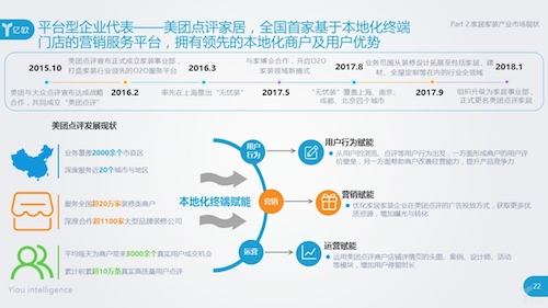 美團點評家居作為平臺型企業(yè)代表,是全國首家基于本地化終端門店的營銷服務平臺,擁有領先的本地化商戶及用戶優(yōu)勢。與從電商切入的天貓、京東,從垂直行業(yè)切入的土巴兔、齊家網等平臺相比,美團點評家居以用戶服務為中心,致力于實現(xiàn)終端線上化,提高效率。美團點評家居,一方面為用戶提供跨地域、跨行業(yè)、跨越線上線下的全方位場景,幫助用戶作出消費決策;另一方面,幫助家居家裝企業(yè)解決獲客和互聯(lián)網營銷能力提高的問題——對于小品牌,幫助其快速塑造自己的核心價值、服務、產品和運營能力;對于大品牌,幫助其做線下終端的營銷升級,構建新零售基礎。綜合來看,美團點評家居的本地化終端賦能優(yōu)勢明顯,且用戶尋找本地生活服務認知基礎牢固,未來市場可期。