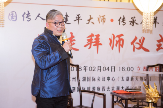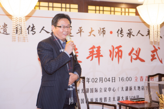 2月4日,蘇州太湖之濱的蘇州太湖國際會(huì)議中心暖意融融,國家級非物質(zhì)文化遺產(chǎn)項(xiàng)目明式家具制作技藝代表性傳承人、吳門大家創(chuàng)始人許建平大師收徒儀式隆重舉行,羊文娟、羊洋姐妹正式成為許大師的第二十、二十一位入室弟子。蘇州家具協(xié)會(huì)會(huì)長顧志浩、蘇州家具協(xié)會(huì)秘書長石磊、蘇州家具協(xié)會(huì)紅木家具專業(yè)委員會(huì)主任宋衛(wèi)東、蘇州非遺辦副主任張嵐、蘇州家具協(xié)會(huì)秘書倪國梁、上海視覺學(xué)院手作教授陳彤、兩岸著名室內(nèi)設(shè)計(jì)師白慶聰、上海寶鋼宣傳部部長楊小川以及吳門大家的其他十多位師兄弟等共同見證了盛況。