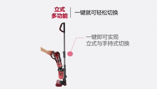 立式地面吸塵模式轉(zhuǎn)手持模式只需要按一鍵就可切換,無需彎腰把機器放到地上拆裝。
