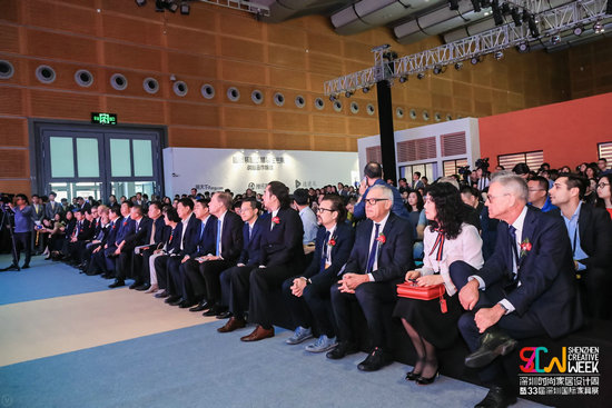 出席此次開幕式的嘉賓有:芬蘭駐中國(guó)大使館大使肅海嵐Jarno Syrjälä、瑞士駐廣州總領(lǐng)事館副總領(lǐng)事白睿 René Bänziger、設(shè)計(jì)互聯(lián) | 海上世界文化藝術(shù)中心館長(zhǎng)奧雷•伯曼Ole Bouman、中國(guó)中小企業(yè)協(xié)會(huì)會(huì)長(zhǎng)李子彬、深圳市經(jīng)信委主任劉勝、深圳市時(shí)尚創(chuàng)意產(chǎn)業(yè)聯(lián)盟主席侯克鵬、深圳市家具行業(yè)協(xié)會(huì)會(huì)長(zhǎng)左右家私有限公司董事長(zhǎng)黃華堃、深圳市家具行業(yè)協(xié)會(huì)執(zhí)行會(huì)長(zhǎng)仁豪家具發(fā)展有限公司董事長(zhǎng)尤國(guó)忠、President of Angelo Vasino Spa Renato Vasino、BP&P創(chuàng)始合伙人Luca Sabino Petrone、AETEX 亞太區(qū)推廣經(jīng)理 Maria Elena Angell、深圳家具研發(fā)院院長(zhǎng)許柏鳴、漾美家居(天津)有限公司董事長(zhǎng)呂東丹等。