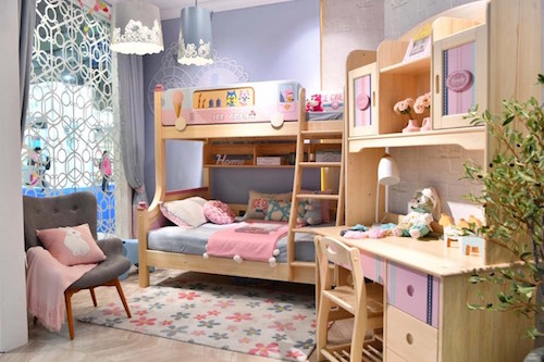粉色冰淇淋雙層床,以繽紛夏日的粉色冰淇淋為主題,護欄搭配妙趣有愛的動畫人物,給孩子無限想象力。溫馨甜蜜的淺粉色,云淡風輕的淡藍色搭配童趣有愛的冰淇淋車設計,給孩子提供盡情玩耍的有趣天地。
