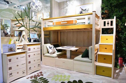 滑板轉(zhuǎn)角雙層床,汲取滑板的輪廓元素,上下床以轉(zhuǎn)角的形式為組合方式,可進行上下雙層床與轉(zhuǎn)角雙層床及拆分上下床三種模式的自由切換,且可搭配增加儲物層架的個性衣柜及節(jié)省空間的簡潔實用學習桌,給予孩子多變的特殊體驗。除此之外還有更多高顏值、高性價比的系列產(chǎn)品及套房神秘現(xiàn)身,屆時將再次掀起兒童家具市場新風潮。