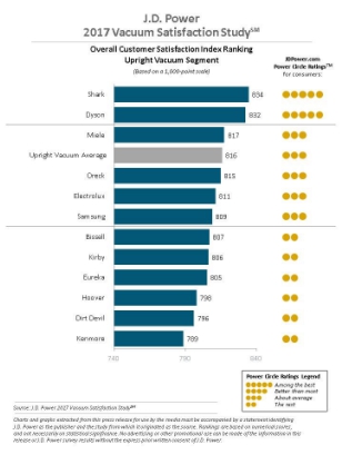 因此我詳細(xì)地了解了一下Shark這個品牌。據(jù)全球領(lǐng)先的用戶體驗滿意度市場研究機構(gòu)J.D.Power發(fā)表的2017VacuumSatisfactionStudy(2017年吸塵器客戶滿意度調(diào)查)顯示,Shark在upright吸塵器品牌中客戶滿意度排名第一。