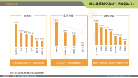 據(jù)《生活電器行業(yè)2018年1月份數(shù)據(jù)報告》顯示,吸塵器憑借當(dāng)月總銷售額超過2億,穩(wěn)居生活電器行業(yè)核心品類的銷售額前五名;而去年雙十一,吸塵器更是超越空氣凈化器,一躍成為當(dāng)日生活電器銷售榜第一。當(dāng)“中國家庭滲透率只有20%”和“全球性市場規(guī)模產(chǎn)品”這兩個看似矛盾的關(guān)鍵詞集于一身,吸塵器產(chǎn)業(yè)事實上已經(jīng)打開一個具有無限發(fā)展?jié)摿Φ目臻g。