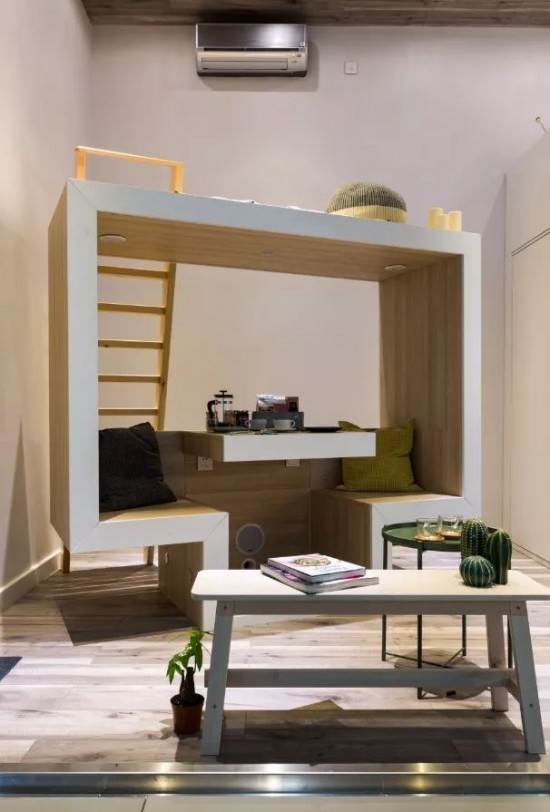 通過模特們的演示,觀眾可以很直觀的看到一個(gè)僅有32㎡的小公寓是如何毫無(wú)壓力的承載度假休閑時(shí)對(duì)公寓空間的各種需求。