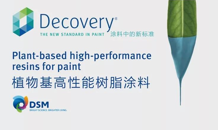 樹脂是涂料中最主要的成分和基礎(chǔ),也稱基料。大多數(shù)設(shè)計(jì)師和建筑師都使用溶劑型或水性涂料,這些涂料中含有大量對(duì)環(huán)境有負(fù)面影響的石油成分。而帝斯曼的Decovery®以植物為基礎(chǔ),環(huán)保健康,減少碳足跡,滿足現(xiàn)在和未來終端用戶的高性能要求。
