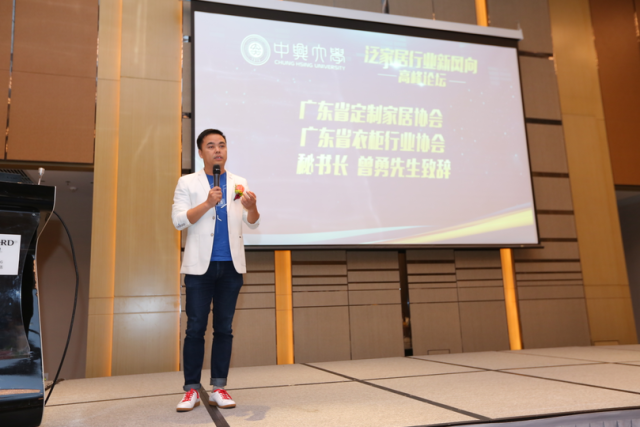 論壇上,廣東省定制家居協(xié)會秘書長 曾勇先生首先上臺致辭:這幾年定制行業(yè)發(fā)展迅猛,每一年行業(yè)核心企業(yè)都保持逾30%的增長,這一狀態(tài)必然導(dǎo)致了人才的稀缺。老板不學(xué)習(xí),企業(yè)做不大;職業(yè)經(jīng)理人不學(xué)習(xí),跟不上企業(yè)發(fā)展步伐;泛家居行業(yè)總裁研修班,能夠培育家具制造行業(yè)高端人才,希望協(xié)會中更多會員能夠一起參與、一起學(xué)習(xí)。
