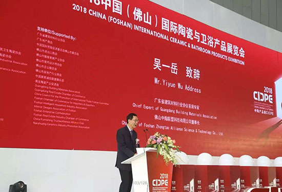 2018年4月19日上午,以“聯(lián)盟·創(chuàng)新·升級(jí)”為主題的“2018中國(guó)(佛山)國(guó)際陶瓷與衛(wèi)浴產(chǎn)品展覽會(huì)(以下簡(jiǎn)稱2018中陶產(chǎn)品展CICPE)”開(kāi)幕式在廣東潭洲國(guó)際會(huì)展中心1號(hào)館主會(huì)場(chǎng)隆重舉行。