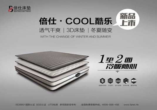 倍仕BTS-酷樂床墊, 采用3D涼席材質(zhì),強效的透氣性和適度調(diào)節(jié)能力。 立體網(wǎng)孔組織結構,使它被譽為會呼吸的材料,相當于床墊的中央通風系統(tǒng),獨特的彈性功能,能夠承受高強度的拉力和撕裂,而且光滑舒適中空,立體式透氣結構,通風易晾干,便于清洗與晾干,配合中空的彈簧,特有的通風設計,更有利于排出身體余熱,確保上佳的透氣效果,二者結合,相互疊加,帶來更勝一籌的透氣防螨性能。