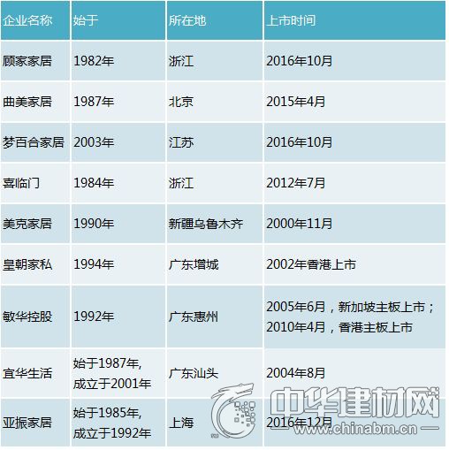中國最早一批家具制造企業(yè)的發(fā)展多始于上世紀(jì)80年代。改革初期,顧家家居、喜臨門、亞振家居、曲美家居、宜華生活等的前身陸續(xù)出現(xiàn),以小作坊的形式進(jìn)行家具生產(chǎn)和制造,并逐步發(fā)展壯大;到90年代初,包括美克家居、敏華控股、皇朝家私在內(nèi)的家具企業(yè)才正式注冊(cè)成立,在人員和生產(chǎn)規(guī)模上也開始顯露雛形。所以從“法定年齡”上看,敏華控股、宜華生活、美克美家、顧家家居、喜臨門、曲美家居、亞振家居、皇朝家私等相差不大,在家具行業(yè)中屬于同輩。在上市企業(yè)中,只有夢百合家居稍顯年輕,與“老一輩”相比,夢百合在21世紀(jì)成立,雖年齡較其他企業(yè)偏小,但實(shí)力不弱,屬于后起之秀。