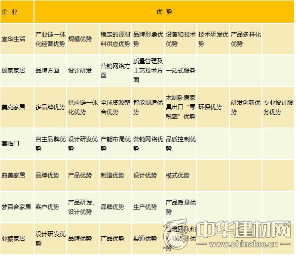 企業(yè)的核心競爭力不外乎品牌、產(chǎn)品、生產(chǎn)制造、設(shè)計(jì)研發(fā)、環(huán)保等幾個(gè)方面。雖然具體優(yōu)勢表現(xiàn)不盡相同,但大方向是一致,如環(huán)保方面都通過質(zhì)量管理體系認(rèn)證,設(shè)計(jì)研發(fā)上都重視原創(chuàng)設(shè)計(jì),擁有眾多自主知識(shí)產(chǎn)權(quán)的專利技術(shù)等。
