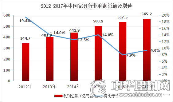 2017年,家具行業(yè)整體發(fā)展趨于平穩(wěn)中略有回升。根據(jù)國家統(tǒng)計(jì)局的統(tǒng)計(jì),我國家具行業(yè)規(guī)模以上企業(yè)在2017年實(shí)現(xiàn)主營業(yè)務(wù)收入9056億元,同比增長10.1%;實(shí)現(xiàn)利潤總額達(dá)到565.2億元,同比增長9.3%。截止2017年底,我國家具行業(yè)規(guī)模以上企業(yè)達(dá)到6000家,與上年相比增加439家,主要集中在廣東、浙江、福建等地,形成以珠三角、長三角、環(huán)渤海、西部和東北為主的五大家具制造業(yè)產(chǎn)區(qū)。