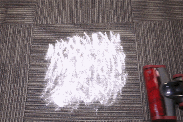 我們將一些顆粒物放置在桌面上,然后選用二合一毛刷進(jìn)行清潔,吸頭走過(guò)垃圾全部進(jìn)入到塵筒中,并未有任何的殘留。