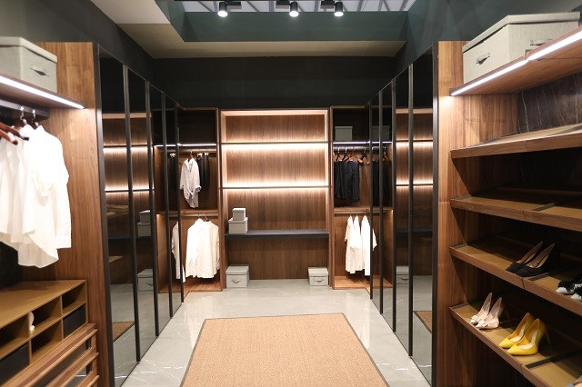 展廳內(nèi)將道格拉斯巖板的應(yīng)用多樣化功能完全展示,涉及至櫥柜、衛(wèi)浴、家具、衣柜等各個方面,讓所來的每一個人都感到驚喜。