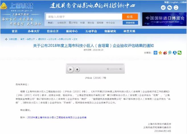 2018年6月,經(jīng)上海市科學(xué)技術(shù)委員會、上海市經(jīng)濟和信息化委員會權(quán)威專家驗收評審,有行鯊魚(上海)科技股份有限公司成功通過“上海市2018年科技小巨人” 驗收評估,斬獲“評級優(yōu)秀”資質(zhì)!