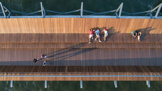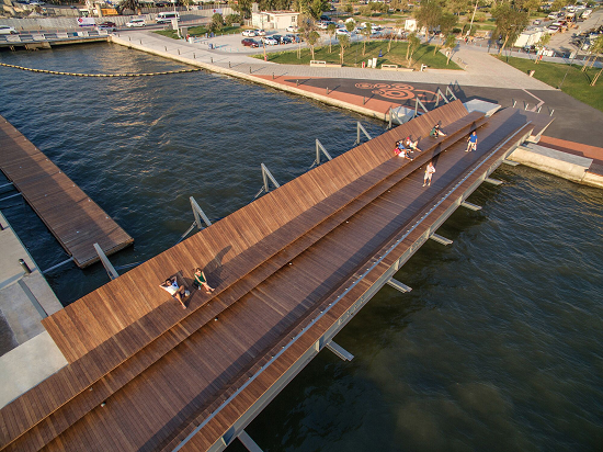 位于土耳其伊茲密爾城區(qū)的“Bostanl?人行天橋和日落休息區(qū)”是由Studio Evren Ba?bu?建筑工作室使用熱處理的美國白蠟?zāi)景逯瞥?。簡潔流暢的木紋表面線條讓游客更加接近夕陽和大海。Studio Evren Ba?bu?建筑工作室創(chuàng)始人兼合伙人Evren Ba?bu?先生表示:“經(jīng)過熱處理的美國白蠟?zāi)狙b飾面因其自然紋理有著親和的觸感。作為設(shè)計(jì)師,我們堅(jiān)信木材是該項(xiàng)目的最好選擇,這也與我們的設(shè)計(jì)理念不謀而合。該項(xiàng)目詮釋了自然、獨(dú)立、質(zhì)樸、包容的完美融合,如今已成為最受大眾喜愛的景點(diǎn)之一。能夠參與這個(gè)開創(chuàng)性的項(xiàng)目,我們感到非常自豪!”