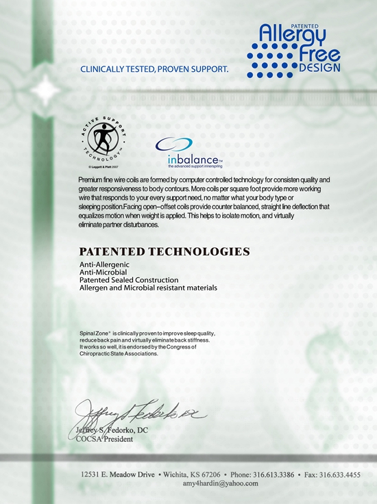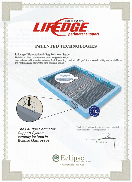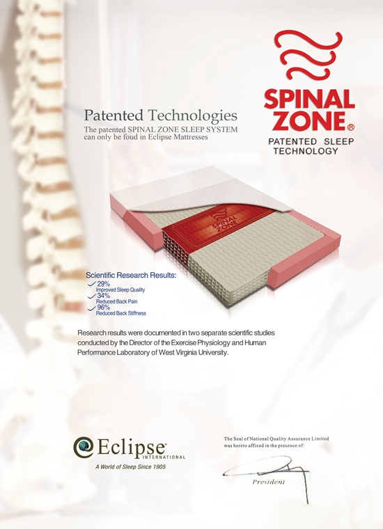 1967年,伊麗絲就發(fā)明了被稱為“床中床”的“中央護背”設計,即在床墊中間再增加一張小床以增加床中央的支撐力,可以減輕腰部、背部及脊椎的壓力,同時可保持人體的曲線美。1993年,美國西維吉尼亞大學測試證明:與其他床墊相比,伊麗絲的護背區(qū)設計可提高29%的睡眠質(zhì)量,提高34%減輕背部疼痛功能,提高96%背部疾病預防功能。同樣的結(jié)果,在1994年的測試中又一次得到認證。到2005年,伊麗絲在技術革新的基礎上,研發(fā)了第二代專利,并獲得美國國家脊椎治療協(xié)會認證,在全球范圍內(nèi)稱為唯一一家受此殊榮的床墊品牌。