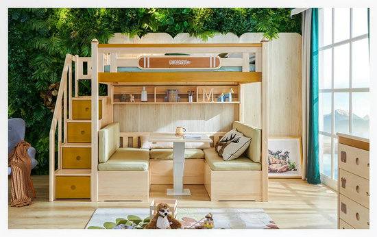 “樹與屋”的設(shè)計,以松堡王國自始至終唯一使用的歐洲芬蘭松為原材料,原生態(tài)地展示了芬蘭松作為兒童家具的優(yōu)勢和環(huán)保性能,讓人們直觀地感受到松堡王國兒童家具原材料選取上的用心和專心。