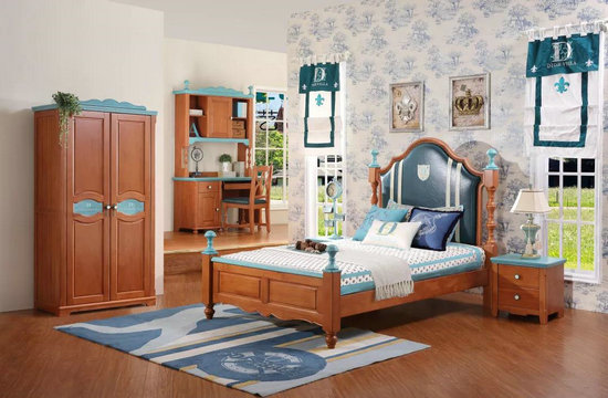 托瑪斯守護(hù)者套房盡顯父母之與孩子的貼心呵護(hù):高大厚重的床屏和守護(hù)柱帶給孩子充分的安全感,清新淡雅的湖光藍(lán)和椰奶白的色彩組合,有助于提高孩子的睡眠質(zhì)量。超纖皮圓形軟包材質(zhì),提升靠背的舒適度同時(shí)又保護(hù)小孩的身體免受磕碰。