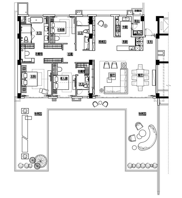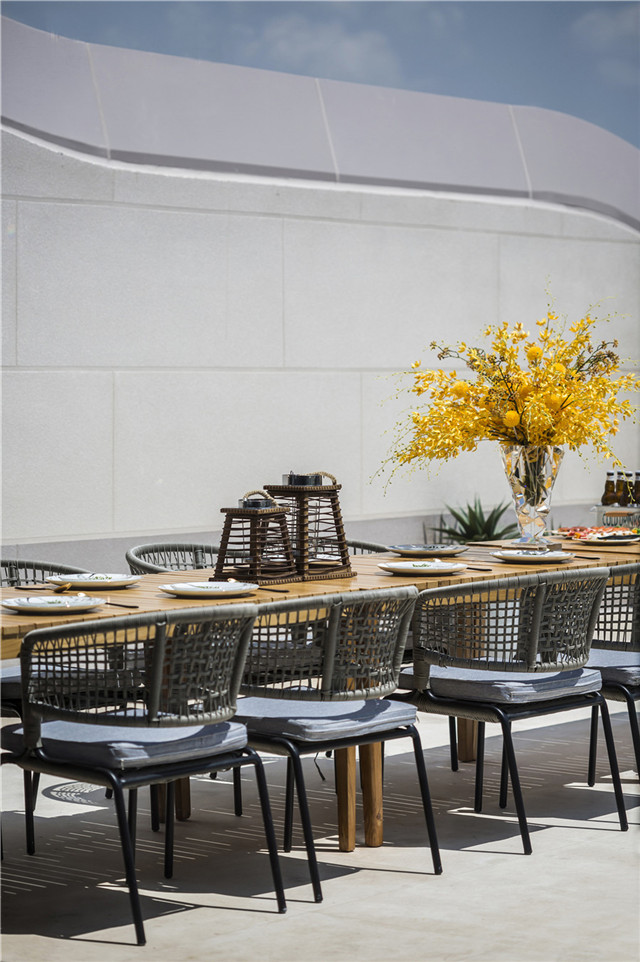 本案戶型的最大亮點(diǎn)是外延的一隅觀景平臺,山城的人文風(fēng)貌與自然一并納入眼底,室內(nèi)外的邊界感逐漸模糊,光線與空氣肆意流通,帶給人們“時(shí)依修竹,好風(fēng)徐來,人靜寂然,心甚平淡”的舒適心境。