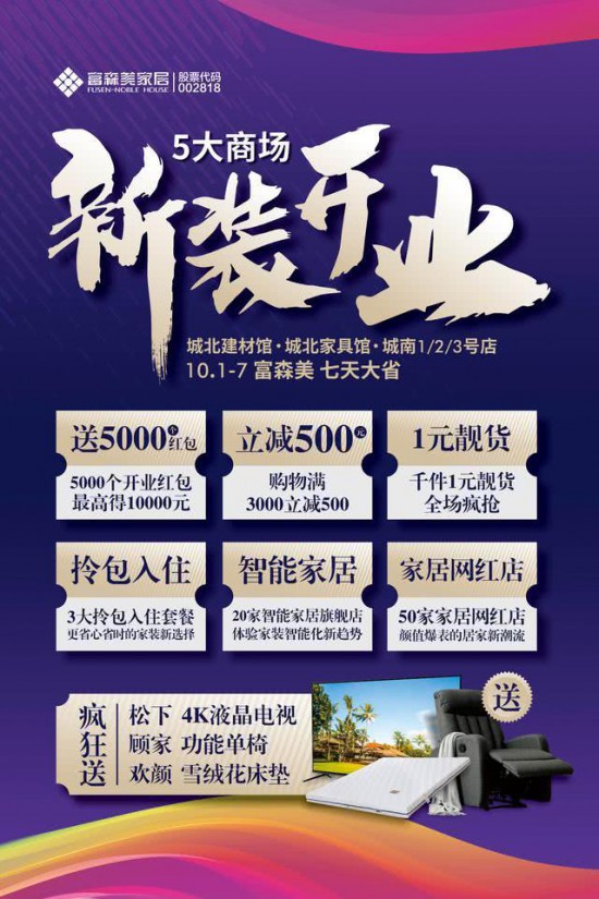 核心提示:富森美家居?5大商場新裝開業(yè)