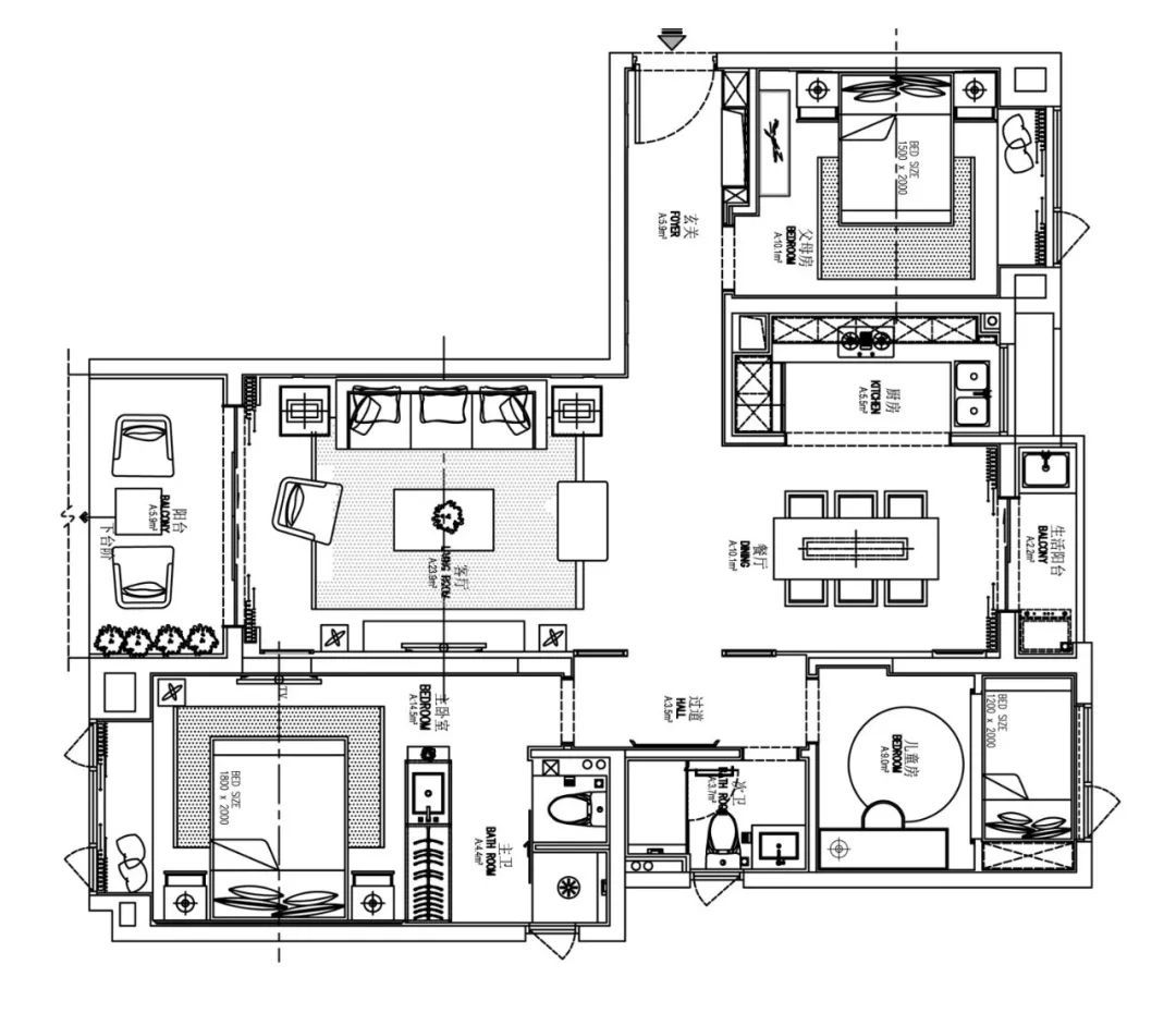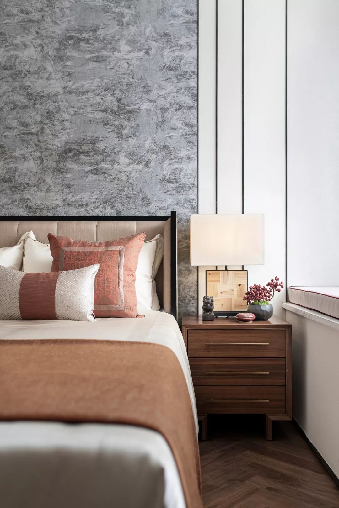 次臥有著琴瑟和鳴的煦煦情意,溫潤的煙色恰到好處地在這淺灰色調(diào)空間內(nèi)盈盈綻放開來,描繪著“秋天靜如水,遠(yuǎn)岫碧侵云”的畫面,營造一個予人安靜休憩的心靈佳所。